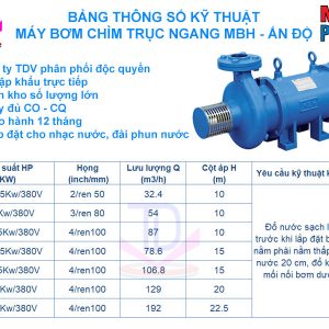 - BƠM CHÌM 3HP, trục ngang, hiệu MBH Ấn Độ.