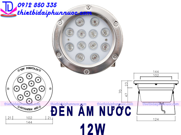 + Lắp đèn 12W cho đài phun nước, hồ cá, thác nước: